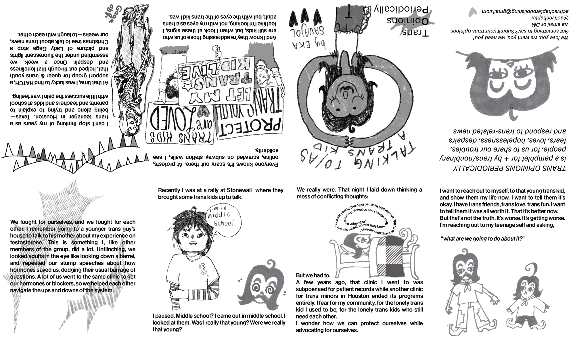 TOP is a pamphlet for and by trans/nonbinary people, for us to share our troubles, fears, loves, hopelessness, despairs and to respond to trans-related news. (accepting submissions)